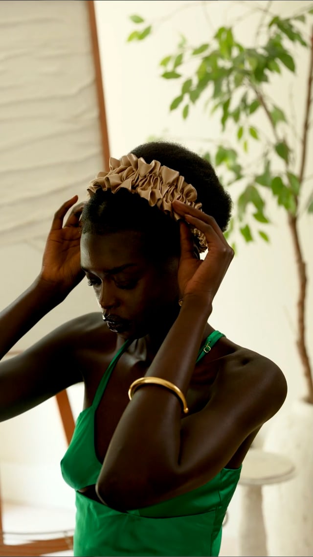 This tan satin crown ruched headband adds a touch of luxury to your look and works well with all hair textures and styles. It's perfect for keeping long braids and twists in place, and looks great with low or faded styles. Plus, it's elastic and fits universally, so removal is a breeze without any snags. Wear it during the day or evening, for special occasions or just because - it's versatile and approved for any occasion!